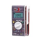 三和電気計器 絶縁抵抗計+クランプメーター 40MΩ DG35 価格: 28,900円 レビュー評価: レビュー数: ●直流電圧:400.0V●交流電圧:400.0V●直流電流:100.0A●交流電流:100.0A●絶縁抵抗:500V/40.0MΩ、250V/40.0MΩ,125V/40.0MΩ●測定電流(10MΩ負荷時):500V約50μA,250V約25μA、125V約12.5μA●電源:LR03(アルカリ単4)X2個●サイズ:130HX75WX19.9Dmm●重量:約160g(電池含)●付属品:アリゲータークリップ付X1個●特長:●電気工事に最適な複合計測器●ポケットに入る超小型入る●活線状態チェックのAC/DC電圧測定●0〜180°まで変えられる薄いU字型クランプセンサー●均一に照らす無機ELバックラ |